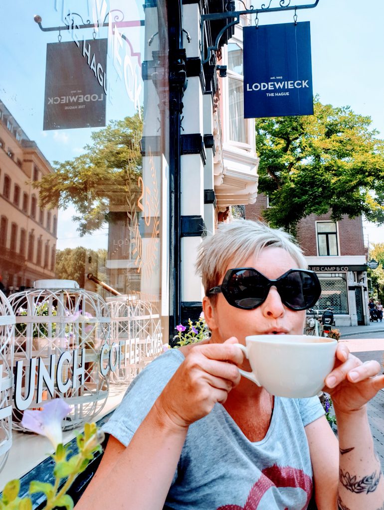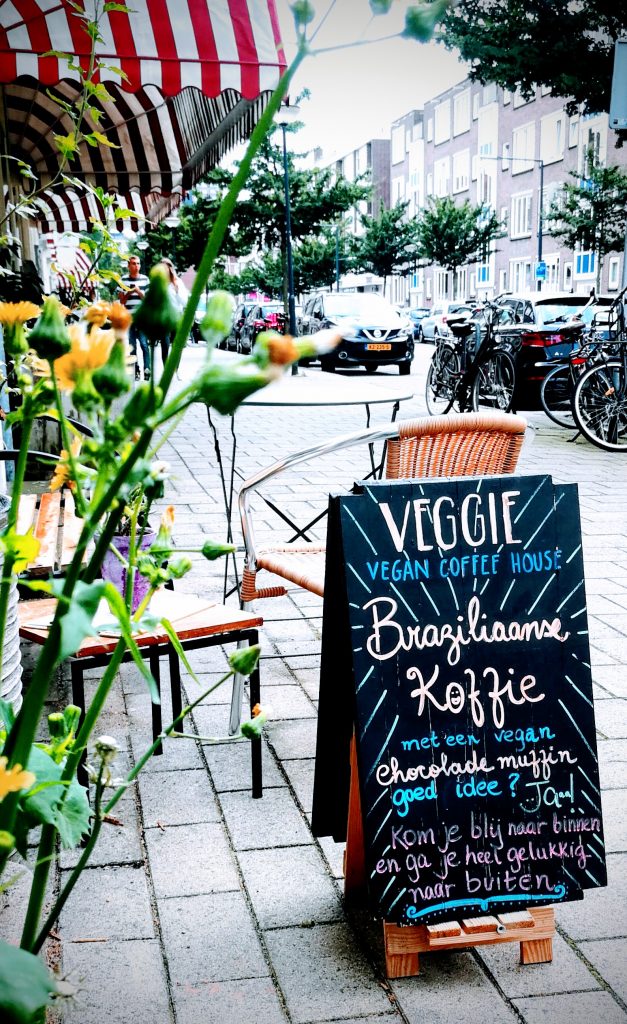 Uiteraard hadden we een paar culinaire stops te doen. Den Haag is vrij Vegan Friendly en we bleven niet op onze honger. De verslaving kwam weer de kop op steken, dus eerst en vooral een latte. Deze vonden we bij Lodewieck Een gezellige zaak in één van de oudste straten van Den Haag, de Denneweg. De bediening is heel vriendelijk en alles was piekfijn verzorgd. We nestelden ons op het kleine terrasje aan de straatkant.