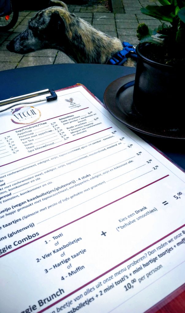 De dinsdag wandelden we gezellig naar centrum Zoetermeer, een kleine 8km heen en terug. Doel? Restaurant Woodstone! Trudy van The Bruges Vegan had dit aangeraden dus we waren vol vertrouwen. Charlotje zag de wandeling niet echt zitten en weigerde een poot te verzetten, dus dan komt haar human to the rescue. Gelukkig was dit maar voor een paar meter 😀