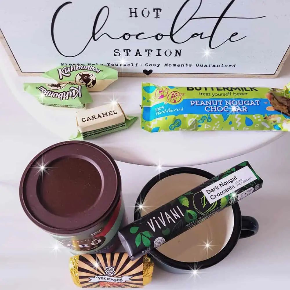 Zo hebben we de handgemaakte Zweedse chocolade van Vegan Delights en Zwitserse van Rhythm 108. Vegan marshmallows van Dandies, de heerlijke chocolade bars van Loveraw en Buttermilk, koekjes van Rhythm 108, snoep zoals gummy bears en zuurtjes, vegan M&M’s en vegan Lindt Lindor bonbons van Mummy Meegz, …