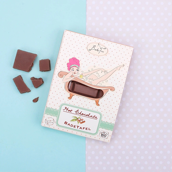 Als je op zoek bent naar een heel bijzonder bad additief, dan is de Bad Chocolade, Hot Chocolate van Bade Fee vast jouw ding! De bad chocolade geeft je een bijzonder soort wellness! De rijke formule voedt de huid intensief met voedingsstoffen uit cacaoboter, kokosolie, amandelolie en sheaboter. Het hoogwaardige bad additief beschermt jouw natuurlijke huidbarrière tegen uitdroging en voorziet deze van voldoende vocht.