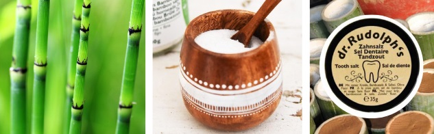 Het tandzout van Dr Rudolph is een tandpastapoeder met krijt, bamboezout* en salie. Het is een alkalisch en zacht tandpoeder dat voorzichtig alle aanslag op je tanden verwijdert (ook rode wijn en theevlekken).