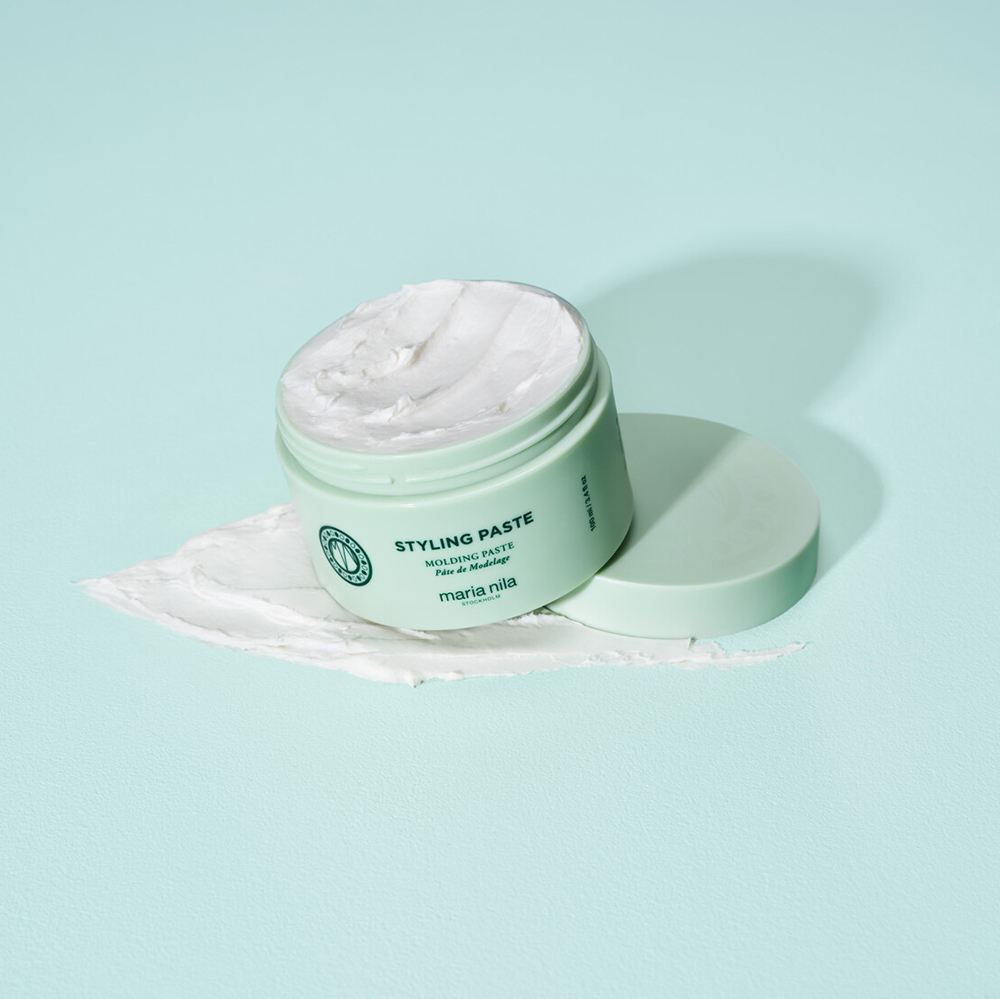 Maria Nila Styling Paste – vegan matte stylingpasta met flexibele hold. Geeft textuur, definitie en een natuurlijke finish zonder het haar te verzwaren. Perfect voor korte tot halflange kapsels.