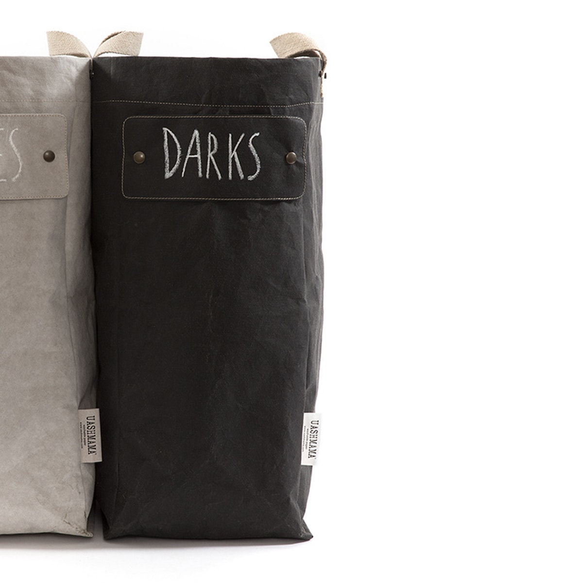 Deze linnenmand, Laundry Bag van Uashmama, vervaardigd uit wasbaar papier, is uitgevoerd met 2 katoenen handvatten. Adopteer er één of zelfs twee! Door het compacte formaat passen ze in elke badkamer, wasplaats of berging. Elke linnenmand heeft drukknopen waarmee je gemakkelijk verschillende zakken aan elkaar vastmaakt. Door dit vindingrijk systeem kan je de was gemakkelijk scheiden en naarmate het gezin groeit, kan je ook meer zakken toevoegen. De zakken hebben tevens een beschrijfbaar, afneembaar label zodat niets fout kan gaan bij het sorteren.