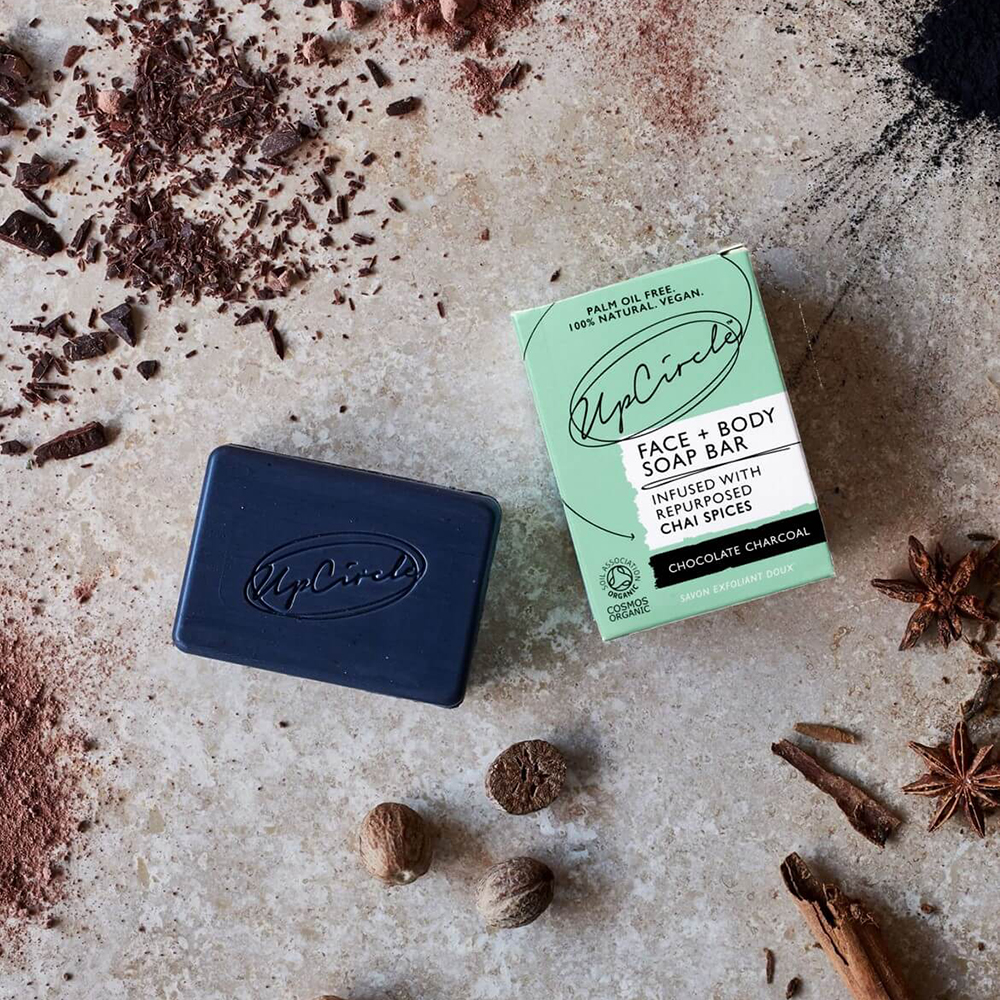 - Upcircle Beauty – Chocolate Charcoal Chai Soap bar – vegan zeep: Deze verzorgende zeep is geschikt voor het gelaat en het lichaam. Gecertificeerd biologisch, 100% natuurlijk, veganistisch, palmolievrij en cruelty-free