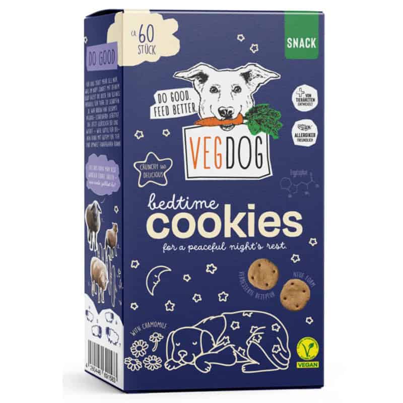 Vegdog Bedtime Cookies is een rustgevende vegan hondensnack waardoor jouw hond geen schaapjes meer hoeft te tellen. Geef jouw lieverd dit krokante koekje voor het slapen gaan en de zoetste dromen zijn verzekerd.